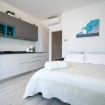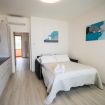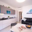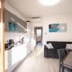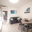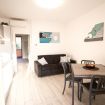 The living area is equipped with a sofa convertible into a double sofa bed, a table, chairs, flat-screen TV and with the possibility to see free movies or TV series